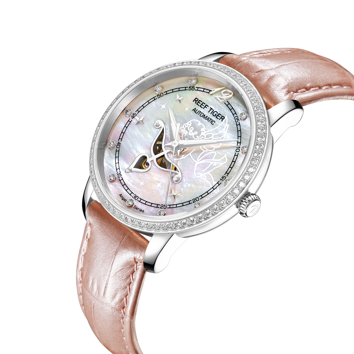 Love Angel 女士腕表。耐用的不銹鋼鉆石表圈也適合打造專業(yè)的求婚和演示。耐用的聚酯前后蓋與協(xié)調(diào)一致。