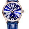 綠色表盤(pán),帶羅馬數(shù)字鉆石標(biāo)記。顯示小時(shí)、分鐘和秒。這款奢華腕表的表盤(pán) 12 點(diǎn)鐘位置印有品牌標(biāo)識(shí)。