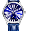 綠色表盤,帶羅馬數(shù)字鉆石標記。顯示小時、分鐘和秒。這款奢華腕表的表盤 12 點鐘位置印有品牌標識。