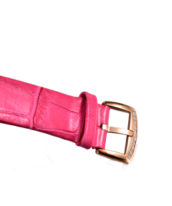 粉色正品小牛皮表帶,配有表扣。