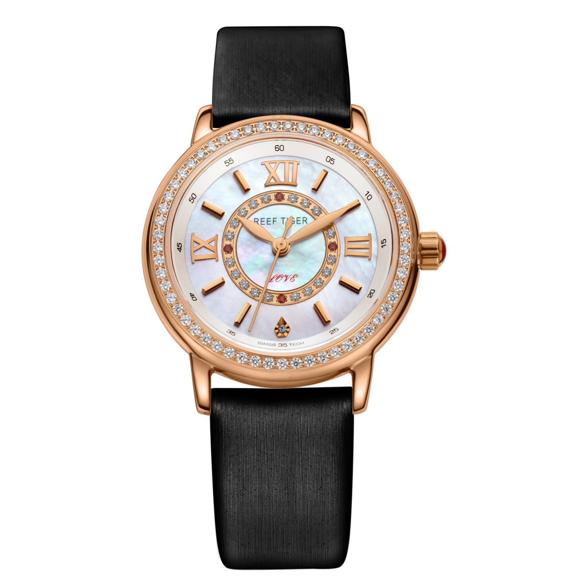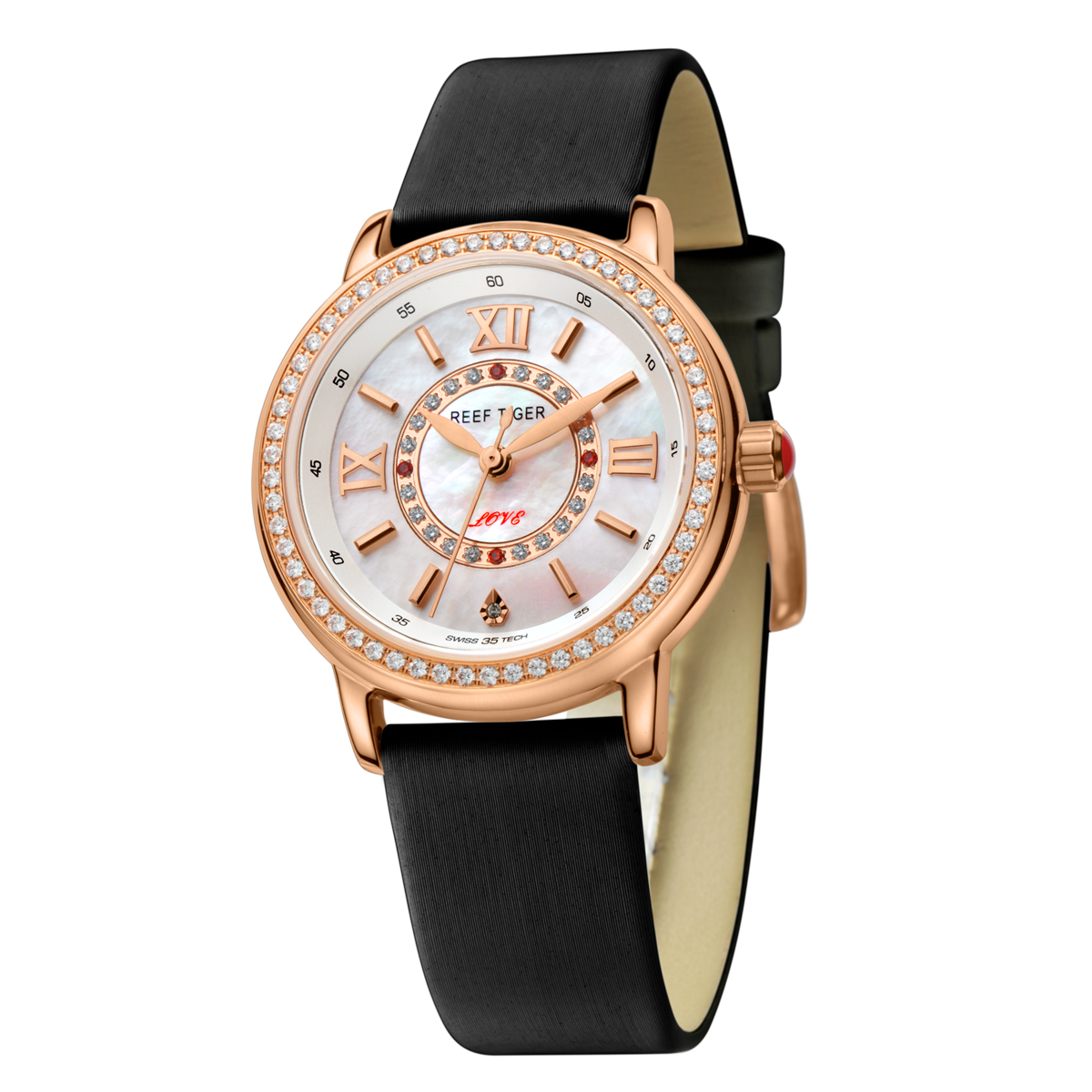 Love Promise 女士腕表。耐用的不銹鋼鍍玫瑰金,表圈上還鑲嵌施華洛世奇水晶,營造出專業(yè)的求婚和演示效果。耐用的聚酯前后蓋,協(xié)調(diào)一致。