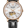 黑色表盤,帶羅馬數(shù)字鉆石標(biāo)記。顯示小時(shí)、分鐘和秒。這款奢華腕表的表盤 12 點(diǎn)鐘位置印有品牌標(biāo)識(shí)。