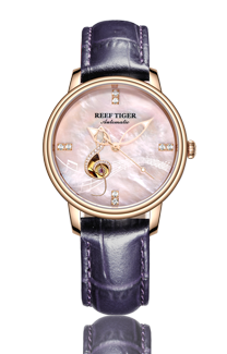 Reef Tiger Love Melody 腕表。耐用的玫瑰金表圈,還配有玫瑰金表圈,打造專業(yè)的提案和演示。耐用的聚酯前后蓋,協(xié)調(diào)一致。