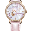 粉色表盤,帶旋律圖案標(biāo)記。時、分、秒顯示。這款豪華手表的標(biāo)志位于 12 點(diǎn)鐘位置。