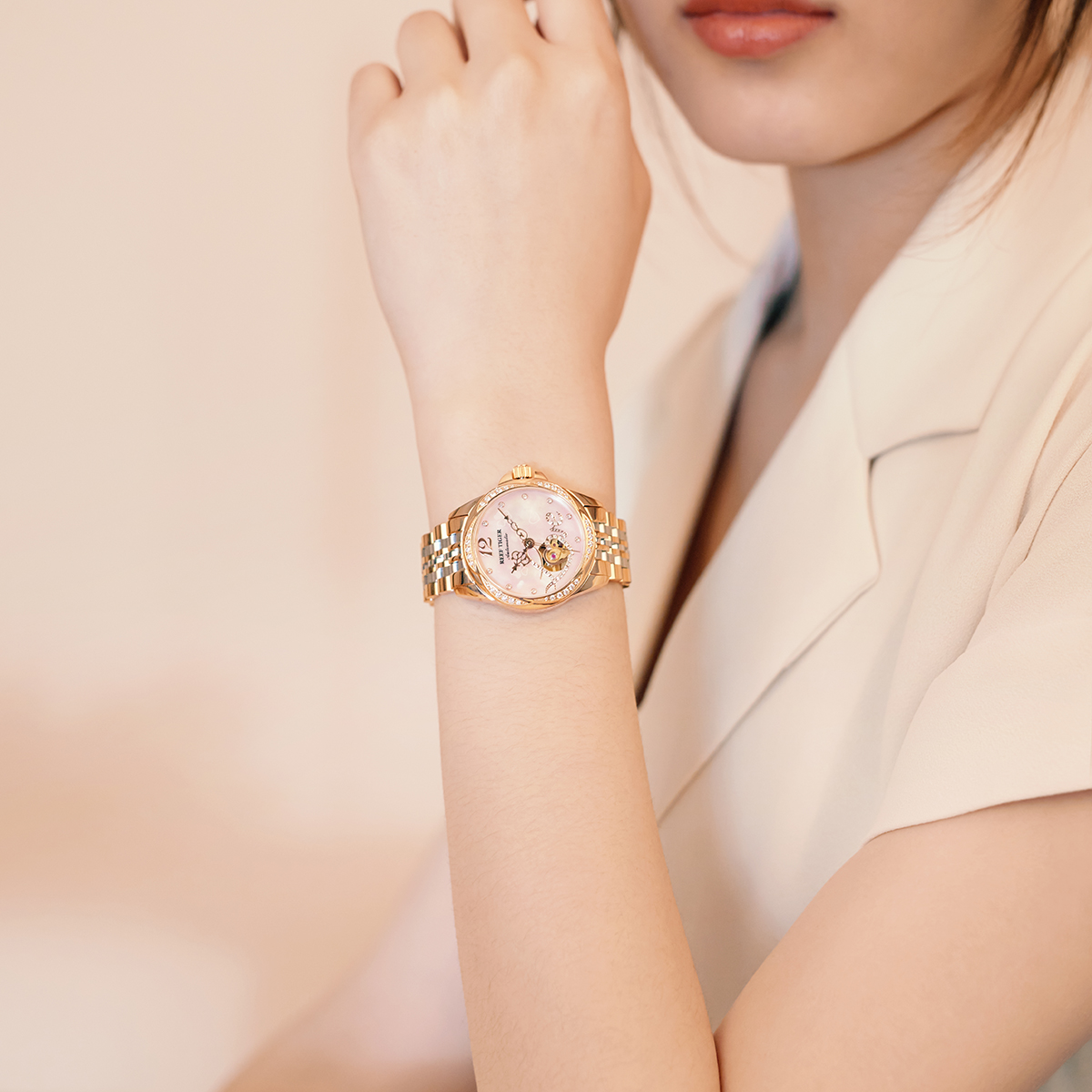 Love Double Heart 女士腕表。耐用的不銹鋼鉆石表圈還配有鉆石,打造專業(yè)的求婚和演示。耐用的聚酯前后蓋與表盤相得益彰。