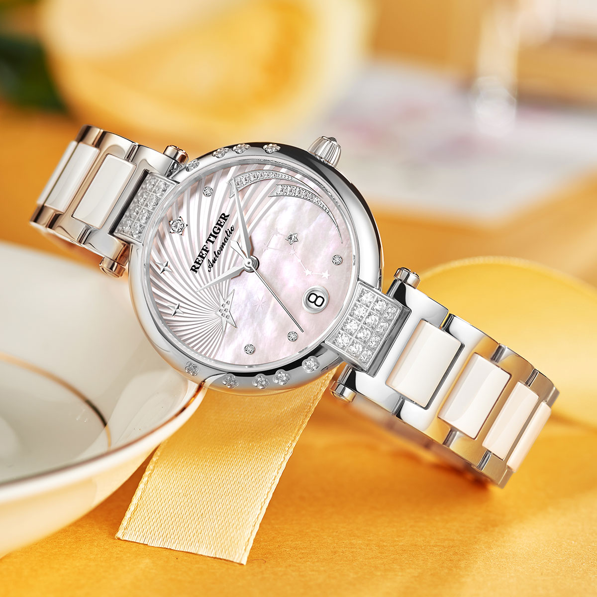 Reef Tiger Love Galaxy 腕表。耐用的不銹鋼表圈,還配有不銹鋼表圈,打造專業(yè)的提案和演示。耐用的聚酯前后蓋,協(xié)調(diào)一致。