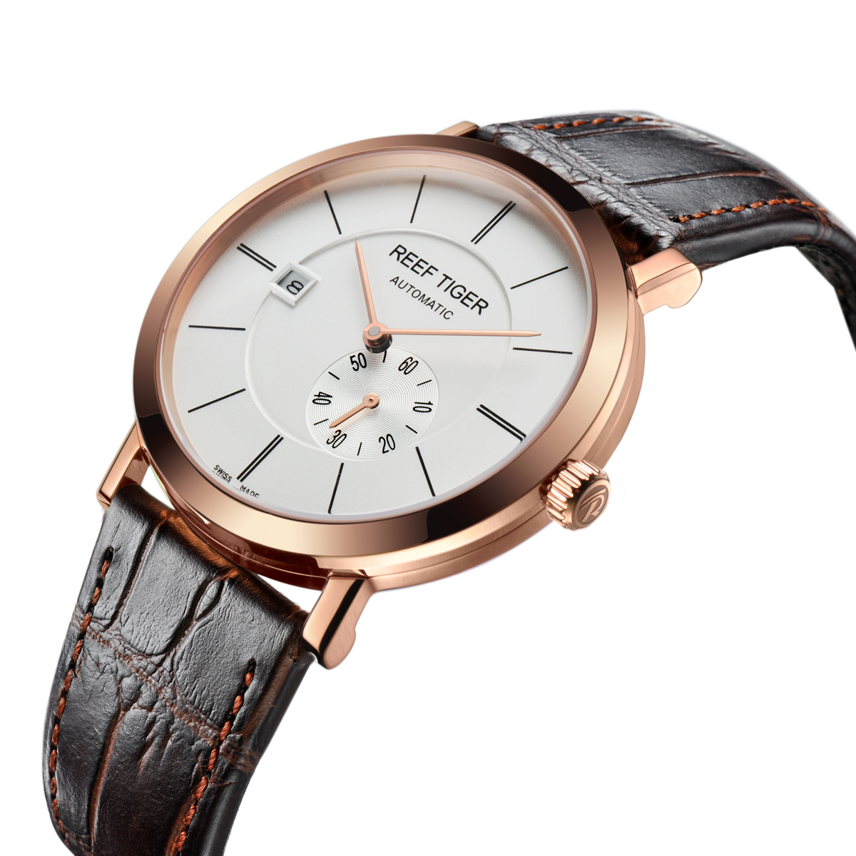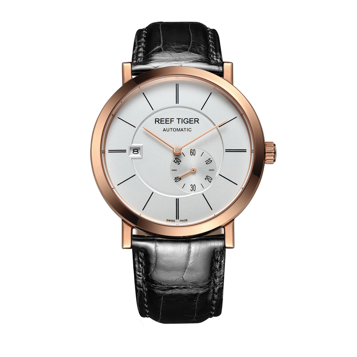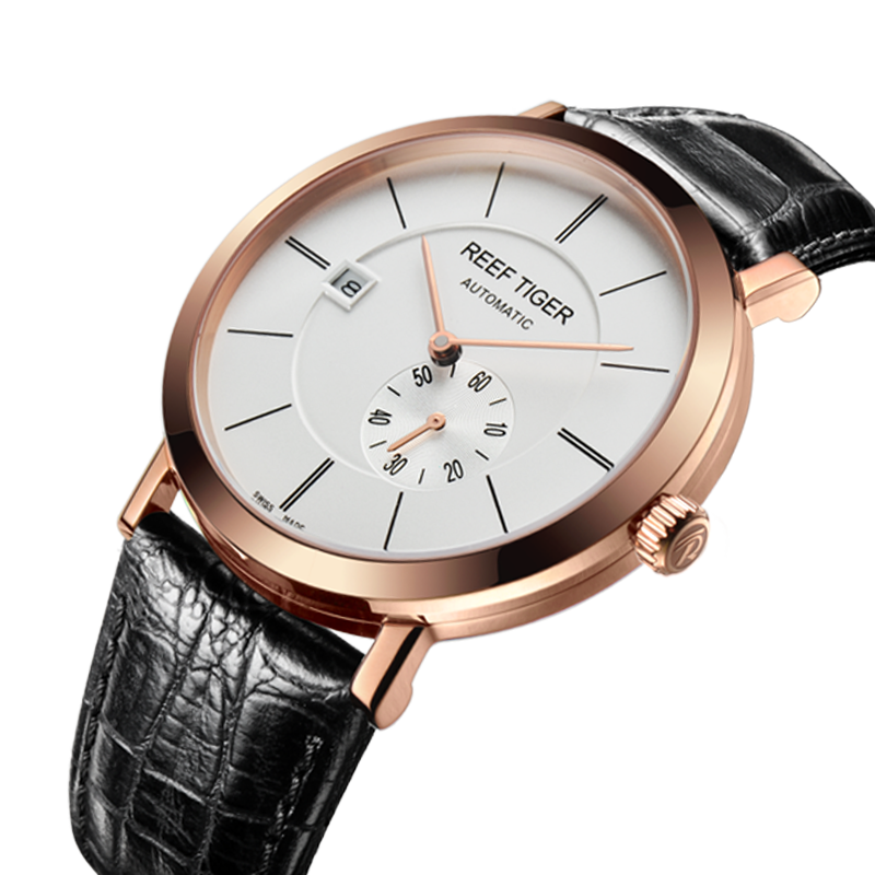 男士玫瑰金 Reef Tiger Seattle 簡約表帶手表。耐用的不銹鋼厚玫瑰金鍍層表身,還配有打造專業(yè)外觀的提案和演示。耐用的聚酯前后蓋,協(xié)調(diào)一致。