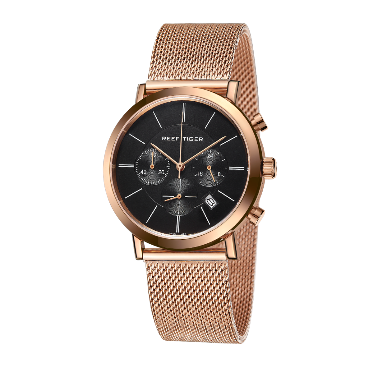 男士玫瑰金 Reef Tiger Seattle Mountain Rainier 手表。耐用的不銹鋼鍍玫瑰金,還配有打造專(zhuān)業(yè)外觀的提案和演示。耐用的聚酯前后蓋,協(xié)調(diào)一致。