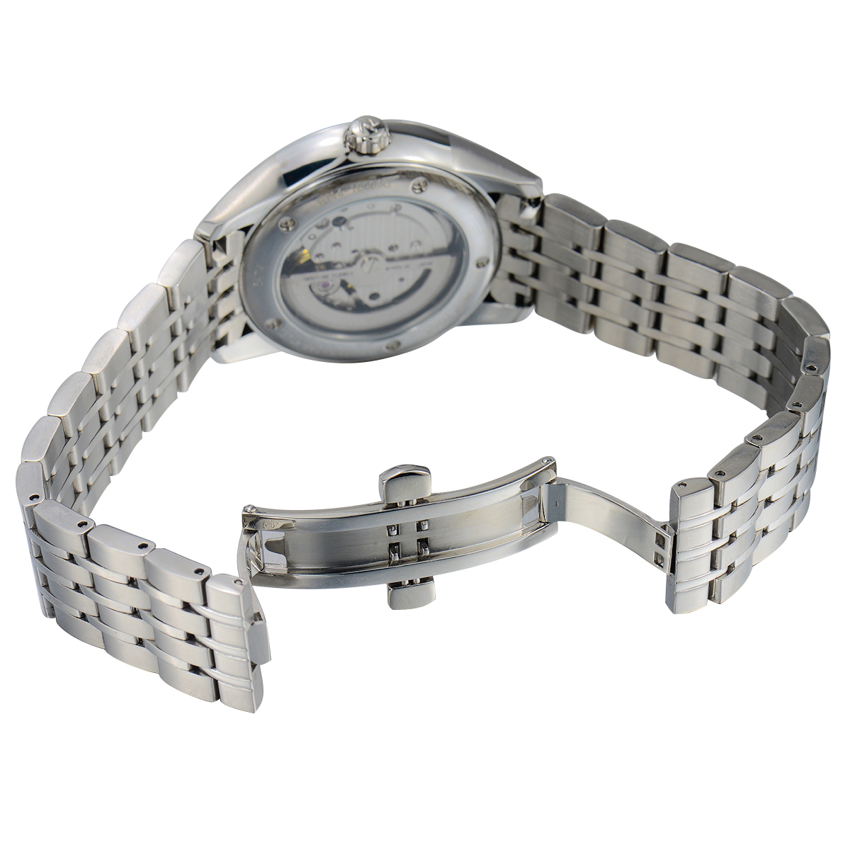 不銹鋼表帶,帶按鈕折疊表扣。