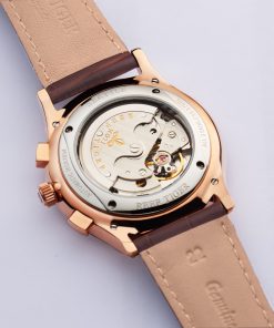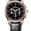 黑色表盤,帶棒狀/阿拉伯?dāng)?shù)字標(biāo)記。計時碼表、小時、分鐘、秒和日期顯示。這款奢華腕表的表盤 12 點鐘位置印有品牌標(biāo)識。
