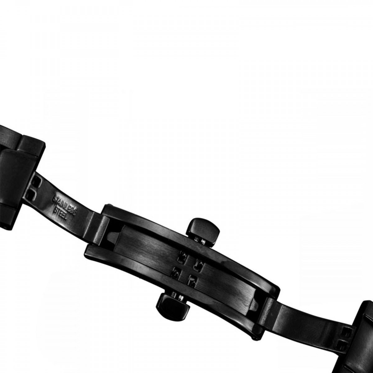 黑色表盤帶棒狀標(biāo)記。計(jì)時(shí)碼表、小時(shí)、分鐘、秒和日期顯示。這款豪華腕表在表盤 3 點(diǎn)鐘位置有其標(biāo)志。