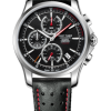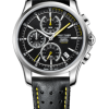 黑色表盤帶棒狀標記。計時碼表、小時、分鐘、秒和日期顯示。這款豪華手表的表盤 3 點鐘位置印有其標志。