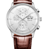 白色表盤(pán),帶條形標(biāo)記。時(shí)、分、秒、日期和星期顯示。這款奢華腕表的表盤(pán) 3 點(diǎn)鐘位置印有品牌標(biāo)識(shí)。