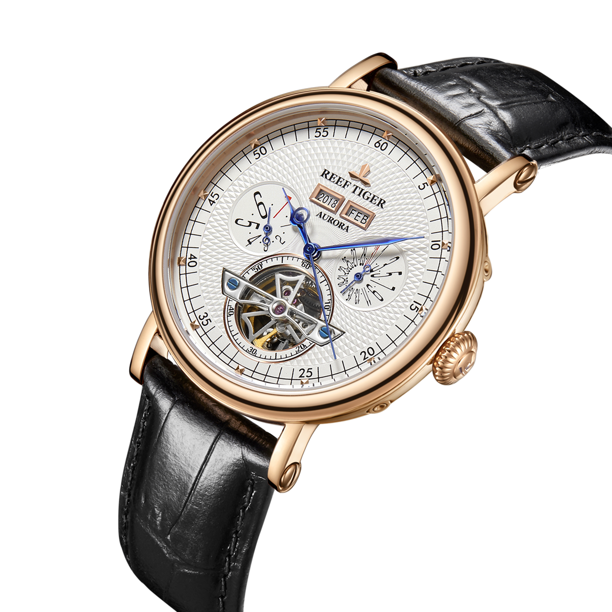 Artist Limner 男士手表。耐用的玫瑰金,固定的玫瑰金表圈也適合打造專業(yè)的提案和演示。耐用的聚酯前后蓋,協(xié)調一致。