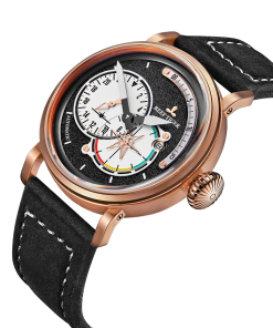 Aurora Pilot 腕表。耐用的不銹鋼表殼鍍有玫瑰金,還配有打造專業(yè)外觀的提案和演示。耐用的聚酯前后蓋與協(xié)調(diào)。