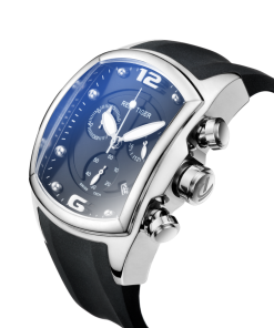 黑色表盤,白色標記和大型超級夜光指針。計時碼表、小時、分鐘、秒和日期顯示。這款豪華手表在表盤 12 點鐘位置有其標志。