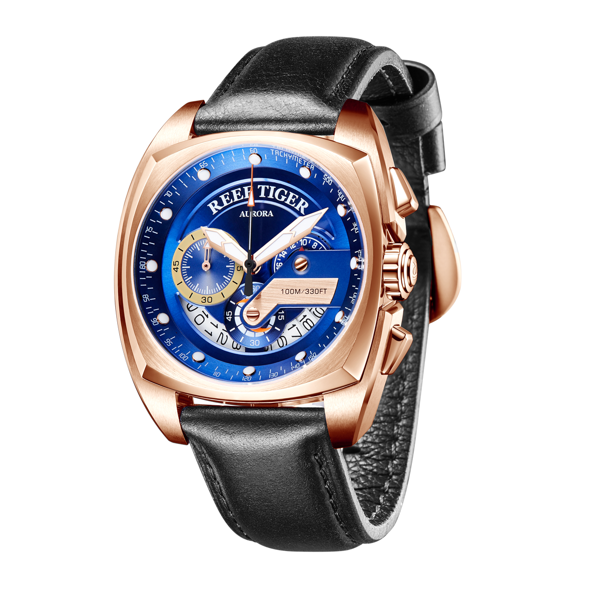 Reef Tiger Aurora Formula Race 腕表。耐用的玫瑰金表圈,還配有玫瑰金表圈,打造專(zhuān)業(yè)的提案和演示。耐用的聚酯前后蓋,協(xié)調(diào)一致。