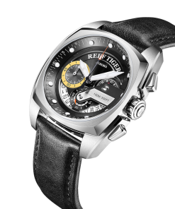 Reef Tiger Aurora Formula Race 腕表。耐用的鋼質(zhì)表圈還配有專業(yè)級的提案和演示。耐用的聚酯前后蓋與表盤相得益彰。