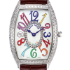 白色扭索紋表盤(pán),彩色阿拉伯?dāng)?shù)字時(shí)標(biāo),搭配鉆石圓環(huán)指示,以一種方式展現(xiàn)女士最迷人的慷慨和甜美。