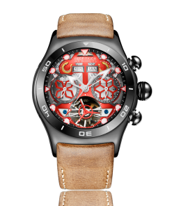 鏤空表盤,帶兩個(gè)子表盤。 12 點(diǎn)鐘位置有兩個(gè)年份和月份窗口。陀飛輪顯示位于 6 點(diǎn)鐘位置,星期顯示位于 3 點(diǎn)鐘位置,日期顯示位于 9 點(diǎn)鐘位置。