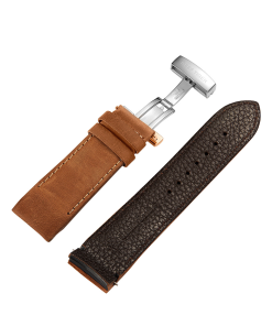 柔軟舒適的小牛皮表帶,配有折疊扣。