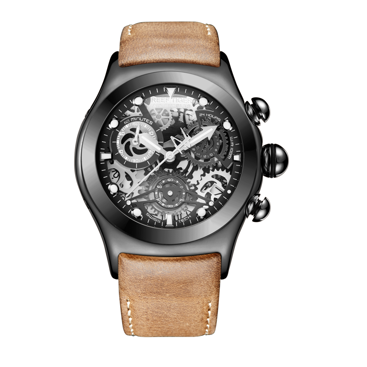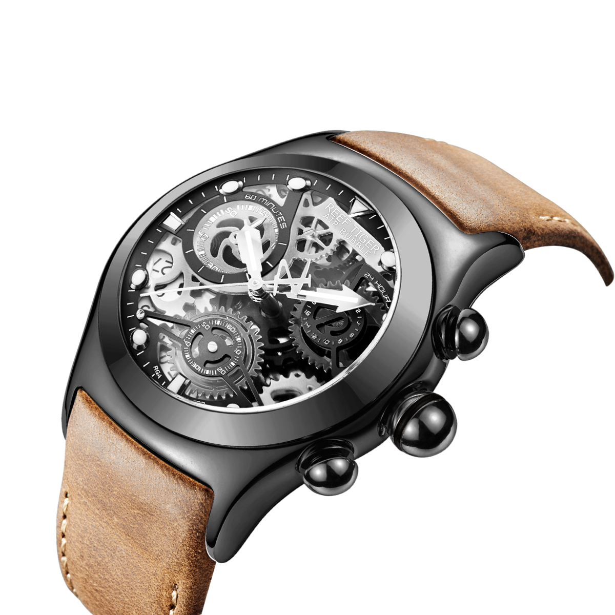 Aurora Big Bang 鏤空腕表。耐用的不銹鋼鍍有 pvd,固定表圈也配有打造專業(yè)外觀的提案和演示文稿。耐用的聚酯前后蓋,協(xié)調(diào)一致。