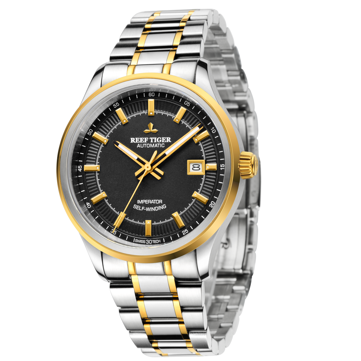 經(jīng)典 Imperator 男士腕表。耐用的不銹鋼黃金表圈也適合打造專業(yè)的提案和演示。耐用的聚酯前后蓋,協(xié)調(diào)一致。