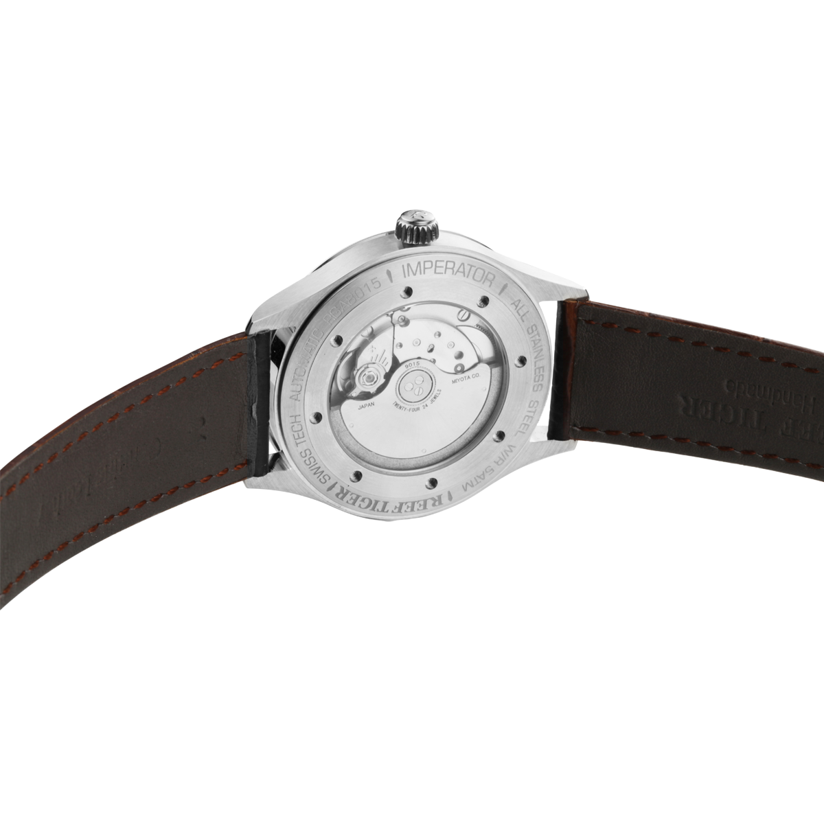 經(jīng)典 Imperator 男士腕表。耐用的不銹鋼固定表圈還配有可打造專(zhuān)業(yè)外觀的提案和演示。耐用的聚酯前后蓋,協(xié)調(diào)一致。