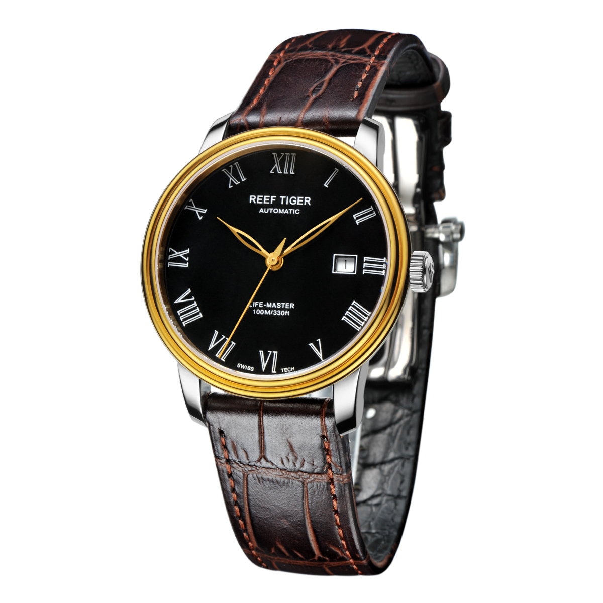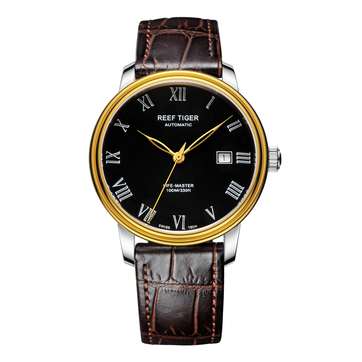 Reef Tiger 經(jīng)典 Life-Master 腕表。耐用的不銹鋼黃金表圈也適合打造專業(yè)的提案和演示。耐用的聚酯前后蓋與協(xié)調(diào)。