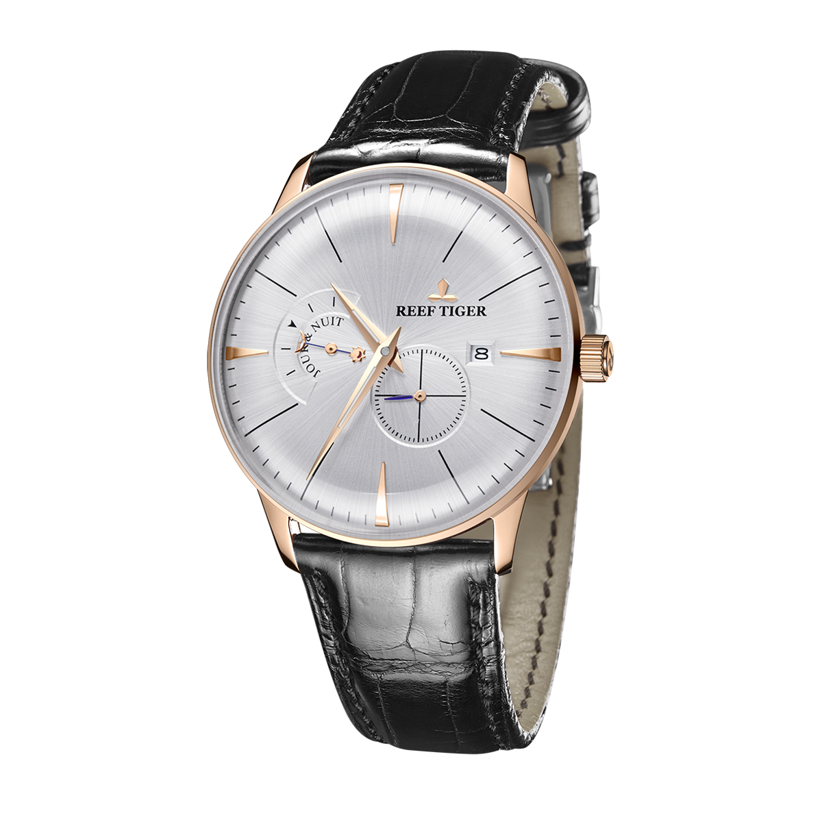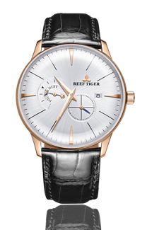 Reef Tiger 經(jīng)典工匠腕表。耐用的玫瑰金表圈,還配有玫瑰金表圈,打造專業(yè)的提案和演示。耐用的聚酯前后蓋,協(xié)調(diào)一致。