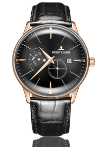 Reef Tiger 經(jīng)典工匠腕表。耐用的玫瑰金表圈,還配有玫瑰金表圈,打造專業(yè)的提案和演示。耐用的聚酯前后蓋,協(xié)調(diào)一致。