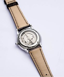 白色表盤,帶棒狀標(biāo)記。時(shí)、分、秒和日期顯示。這款奢華腕表的表盤 1 點(diǎn)鐘位置印有品牌標(biāo)識(shí)。