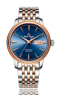 Reef Tiger 經(jīng)典 Prophet 腕表。耐用的不銹鋼玫瑰金表圈還配有可打造專業(yè)外觀的提案和演示。耐用的聚酯前后蓋,協(xié)調(diào)一致。