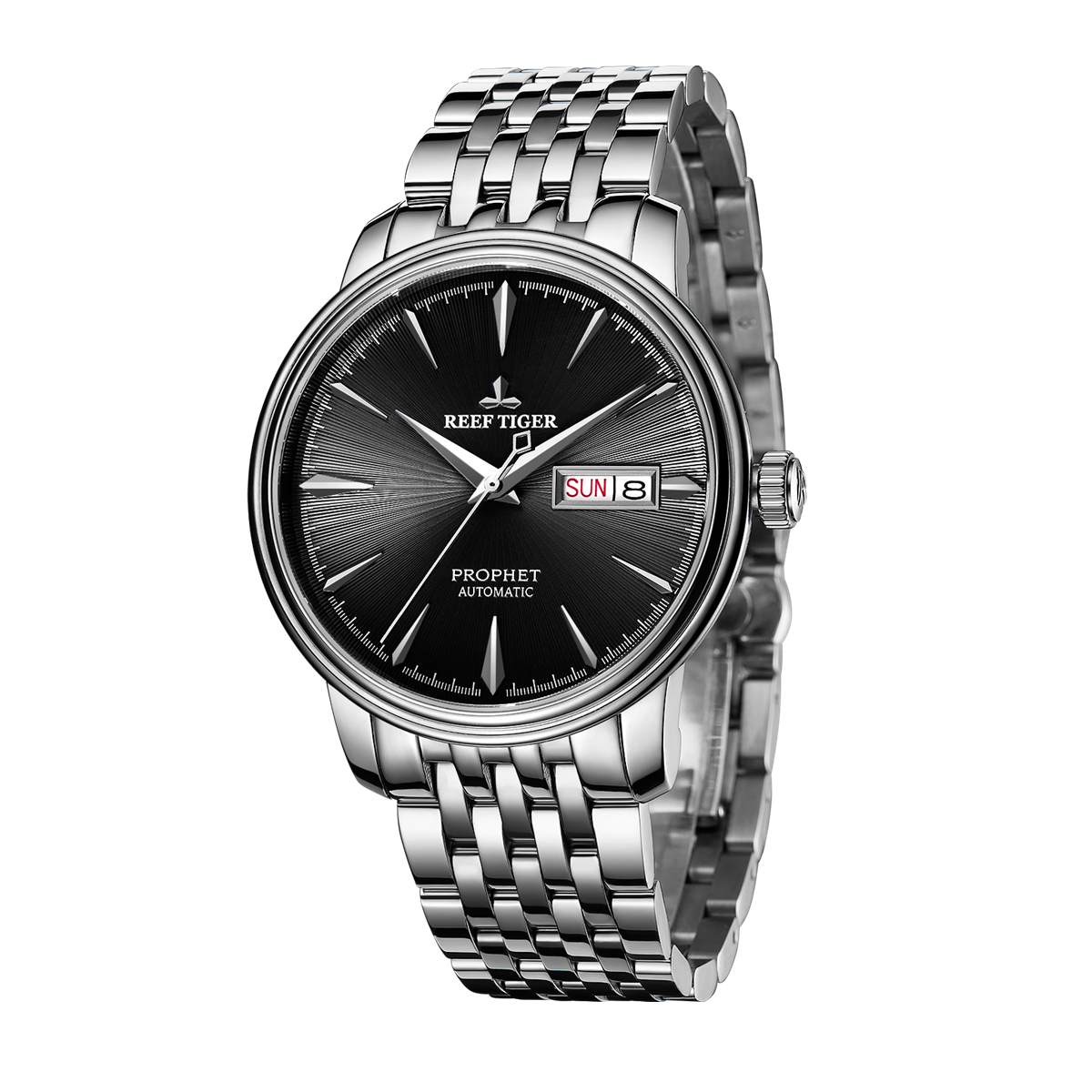 Reef Tiger 經(jīng)典 Prophet 腕表。耐用的不銹鋼雙拱形表圈還配有可打造專(zhuān)業(yè)外觀的提案和演示。耐用的聚酯前后蓋與表盤(pán)相得益彰。