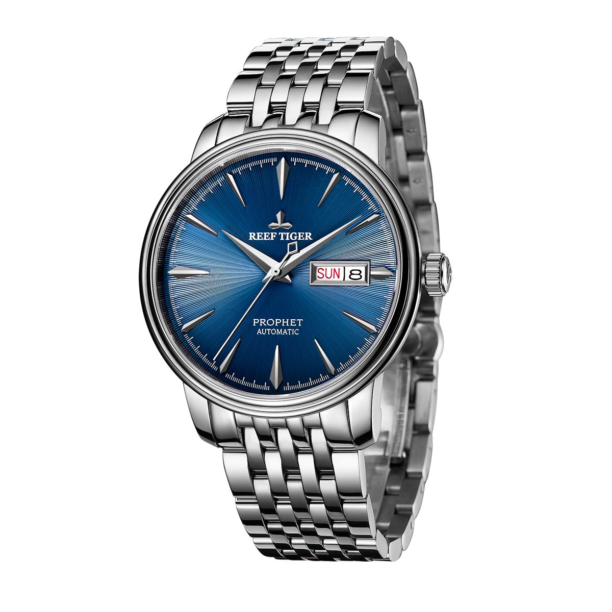 Reef Tiger 經(jīng)典 Prophet 腕表。耐用的不銹鋼雙拱形表圈還配有可打造專業(yè)外觀的提案和演示。耐用的聚酯前后蓋與表盤相得益彰。
