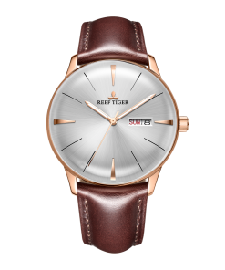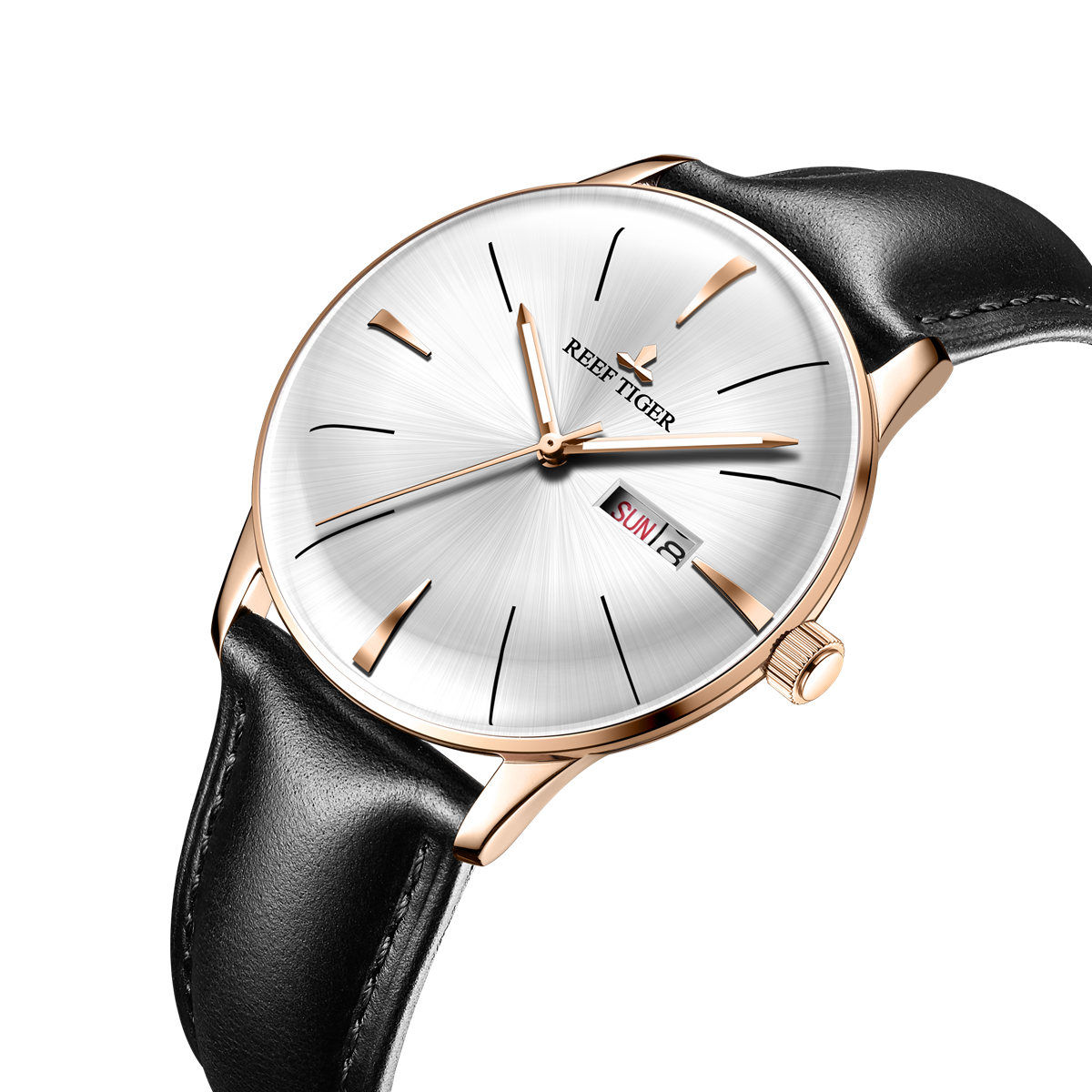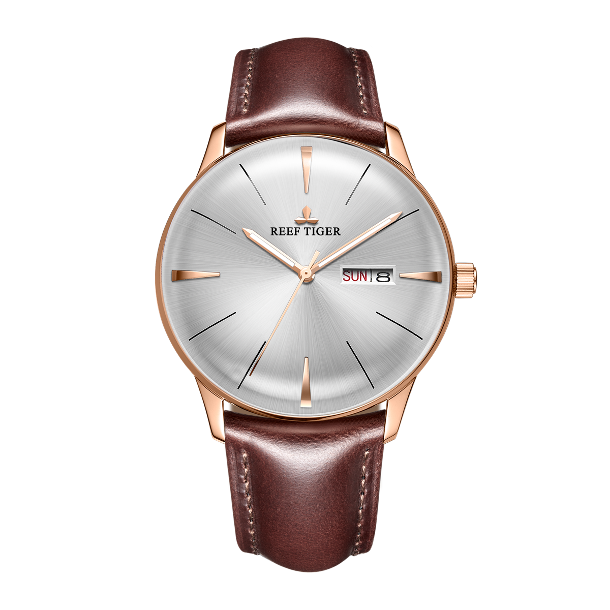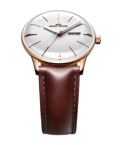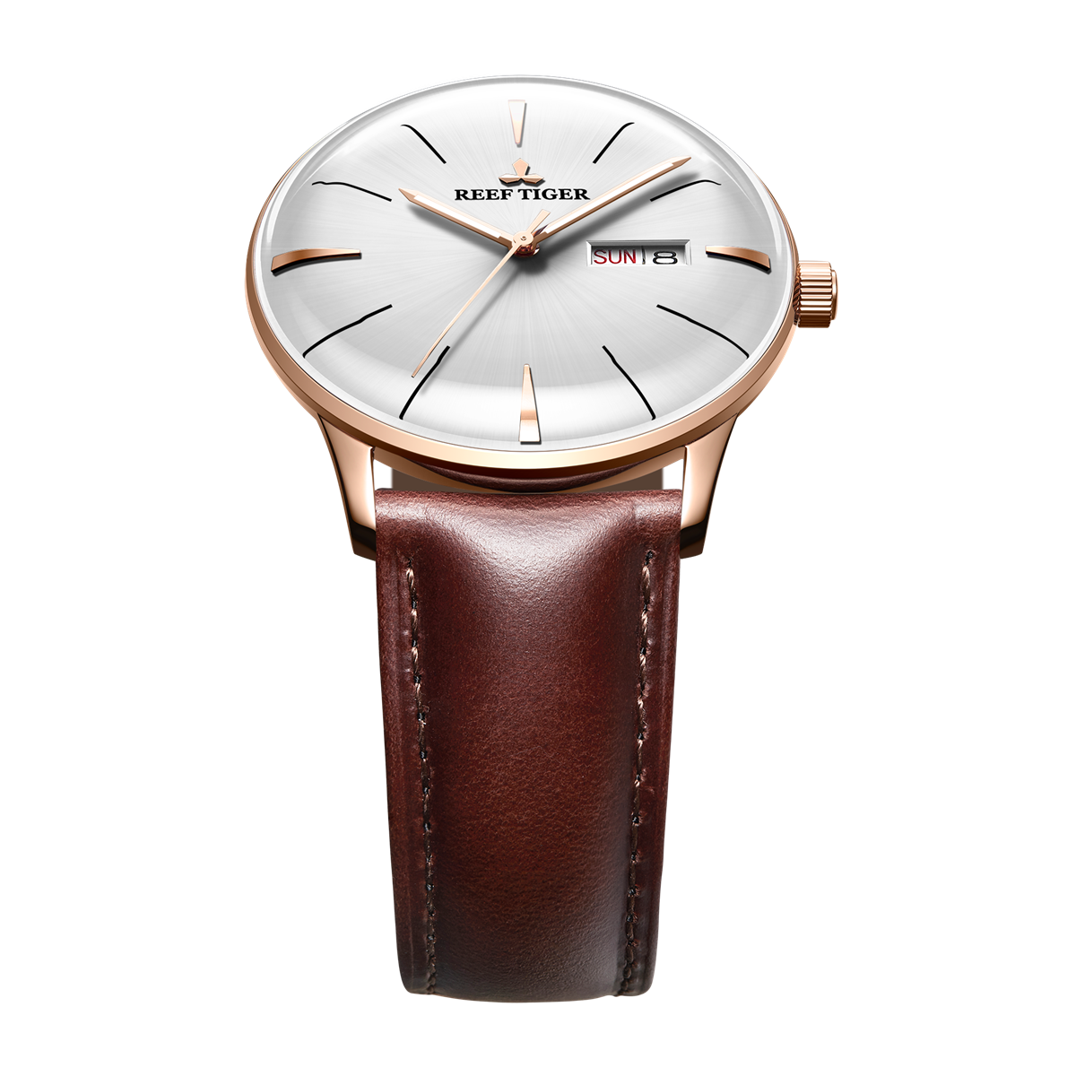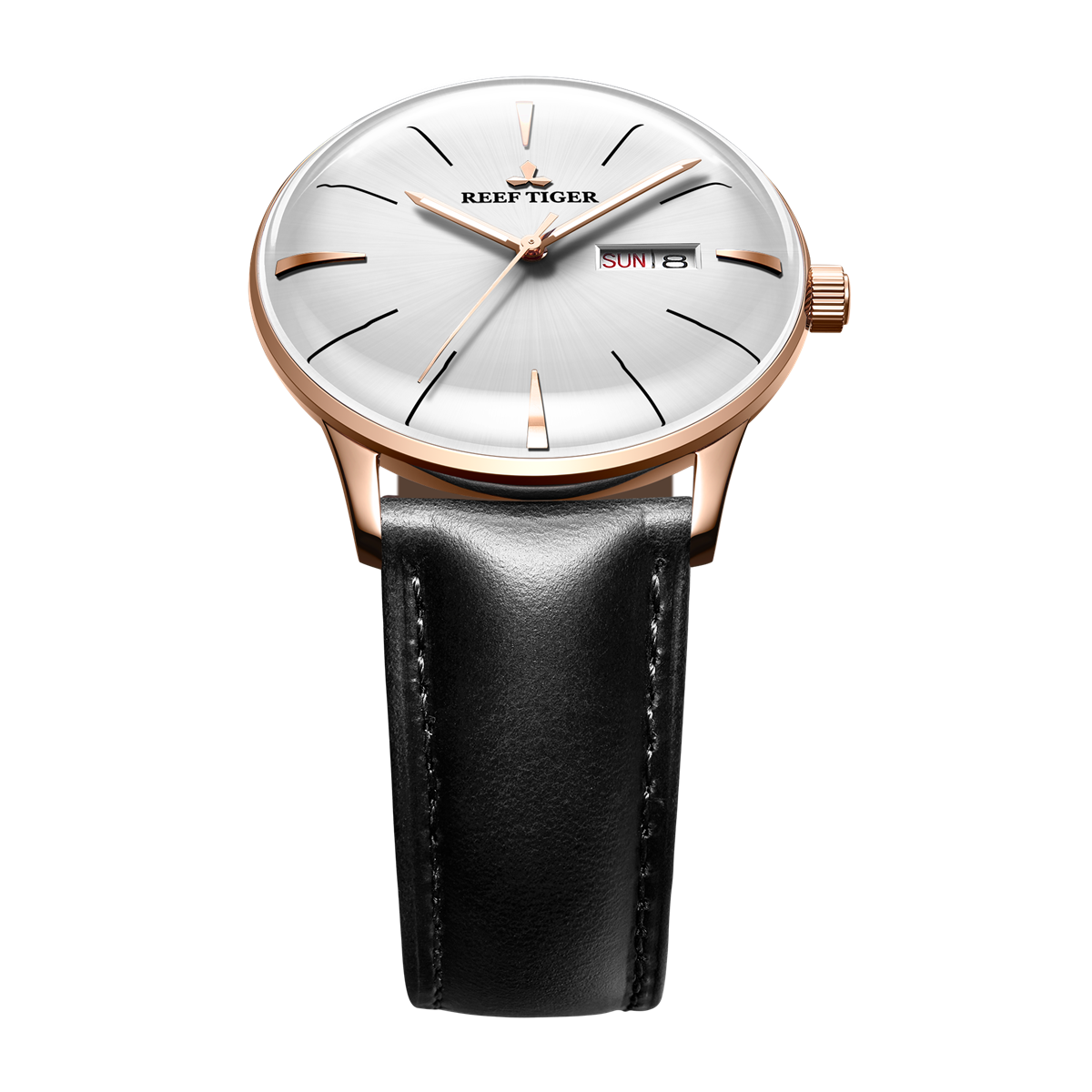 Reef Tiger 經(jīng)典 Heritor 腕表。耐用的不銹鋼玫瑰金表圈還配有可打造專(zhuān)業(yè)外觀的提案和演示。耐用的聚酯前后蓋與協(xié)調(diào)。