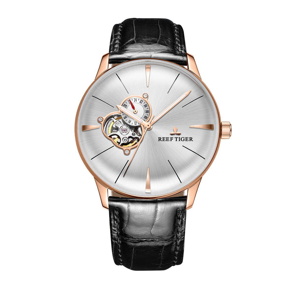 Reef Tiger 經(jīng)典榮耀腕表。耐用的不銹鋼玫瑰金表圈也適合打造專業(yè)的提案和演示。耐用的聚酯前后蓋與協(xié)調(diào)。