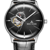 藍色表盤,帶棒狀標記。時、分、秒和陀飛輪顯示。這款奢華腕表的表盤 4 點鐘位置印有品牌標識。