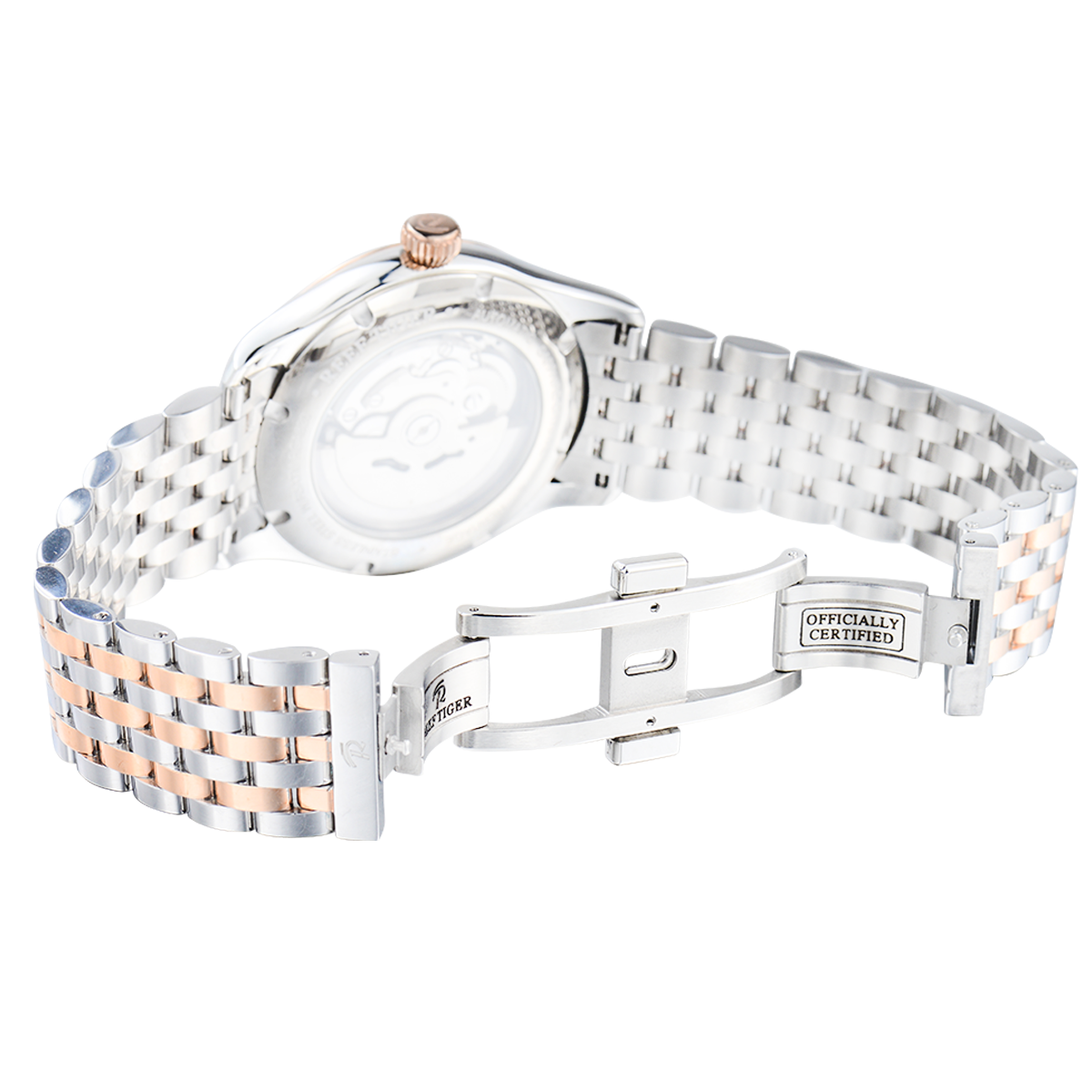 經(jīng)典傳承腕表。耐用的不銹鋼表殼鍍有玫瑰金,還配有打造專業(yè)外觀的提案和演示。耐用的聚酯前后蓋,協(xié)調一致。