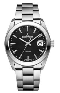 黑色表盤帶棒狀標記。這款萬年歷 II 日期腕表采用拉絲飾面不銹鋼表殼和鉆石切割組合外圈,直徑 40 毫米。它非常優(yōu)雅和經(jīng)典。作為一款商務(wù)腕表,簡單易讀是瑞夫泰格一直追求的目標。 3點鐘位置的日期顯示窗口帶來更好的佩戴感。