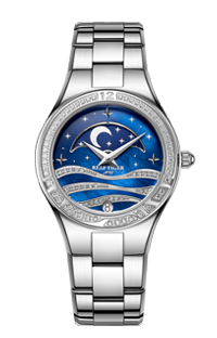 這款腕表的表殼采用不銹鋼材質(zhì),表殼尺寸為30*8mm,延續(xù)了瑞夫泰格Love Stars系列腕表的簡(jiǎn)潔線條。月相的設(shè)計(jì)獨(dú)特而和諧。其弧度符合人體工程學(xué)設(shè)計(jì),確保佩戴舒適。