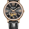 藍色表盤,玫瑰金羅馬數(shù)字鉆石標(biāo)記。顯示小時、分鐘和秒。這款奢華腕表的表盤 12 點鐘位置印有品牌標(biāo)識。