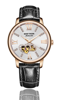 Reef Tiger Love Watch。耐用的玫瑰金表圈,還配有玫瑰金表圈,打造專業(yè)的提案和演示。耐用的聚酯前后蓋,協(xié)調(diào)一致。