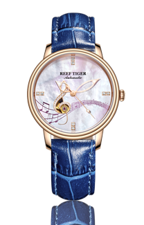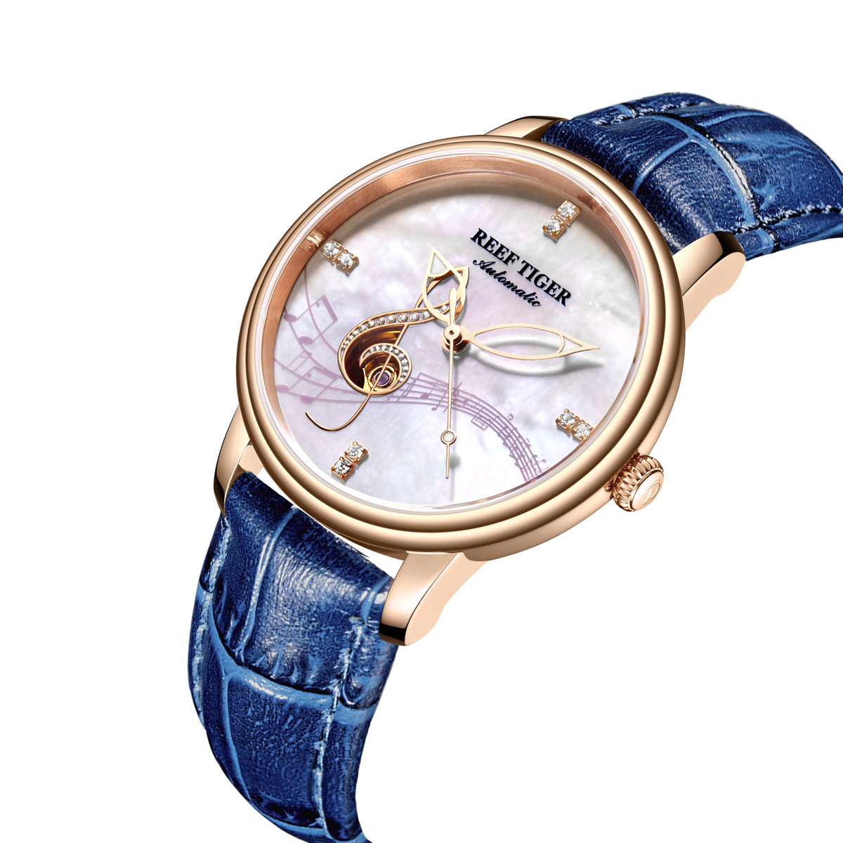 Reef Tiger Love Melody 腕表。耐用的玫瑰金表圈,還配有玫瑰金表圈,打造專業(yè)的提案和演示。耐用的聚酯前后蓋,協(xié)調(diào)一致。