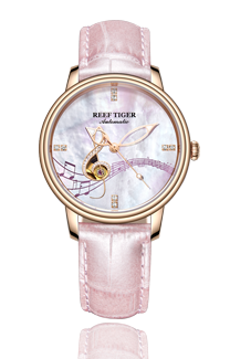 Reef Tiger Love Melody 腕表。耐用的玫瑰金表圈,還配有玫瑰金表圈,打造專業(yè)的提案和演示。耐用的聚酯前后蓋,協(xié)調(diào)一致。