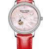 粉色表盤(pán),帶旋律圖案標(biāo)記。時(shí)、分、秒顯示。這款奢華腕表的標(biāo)志位于 12 點(diǎn)鐘位置。