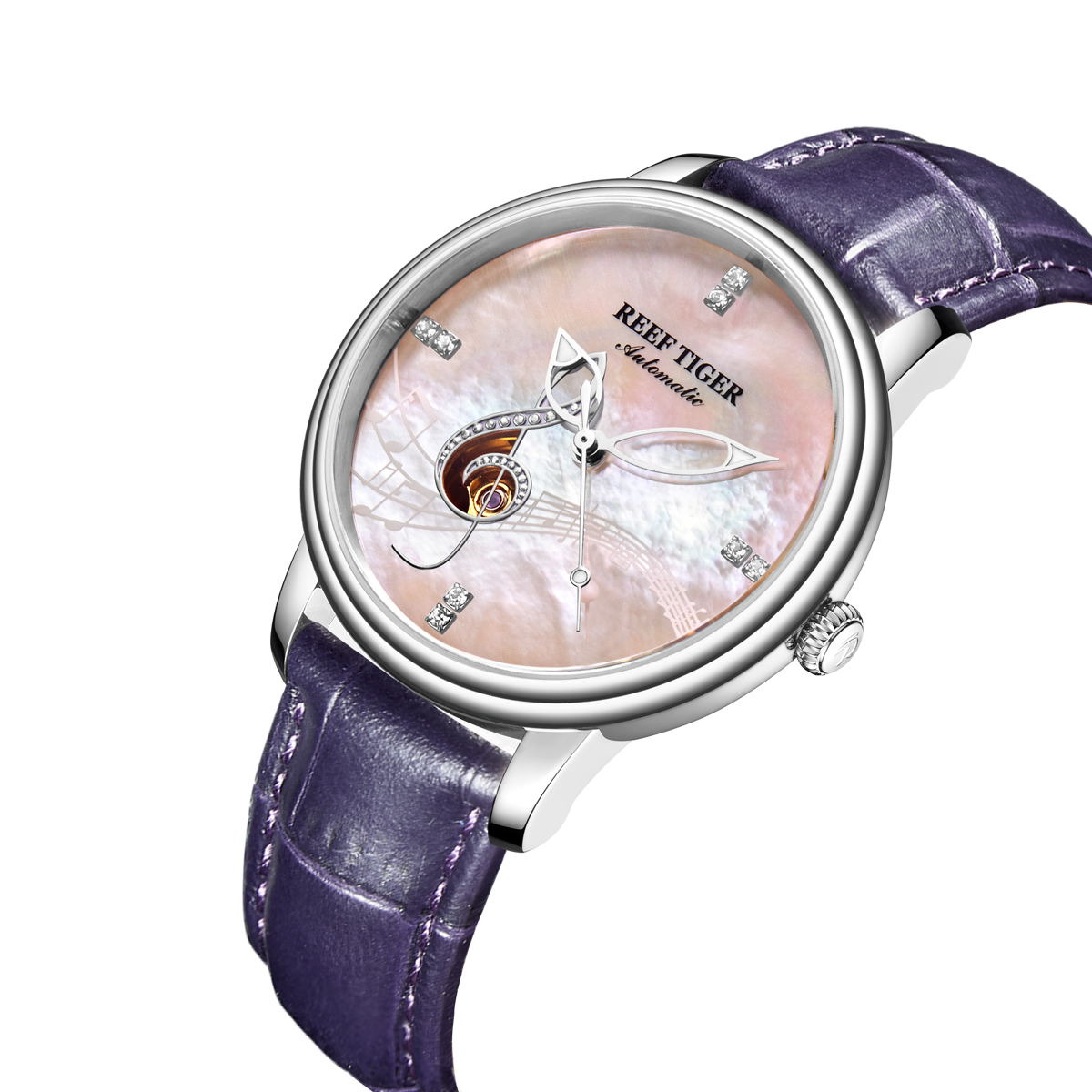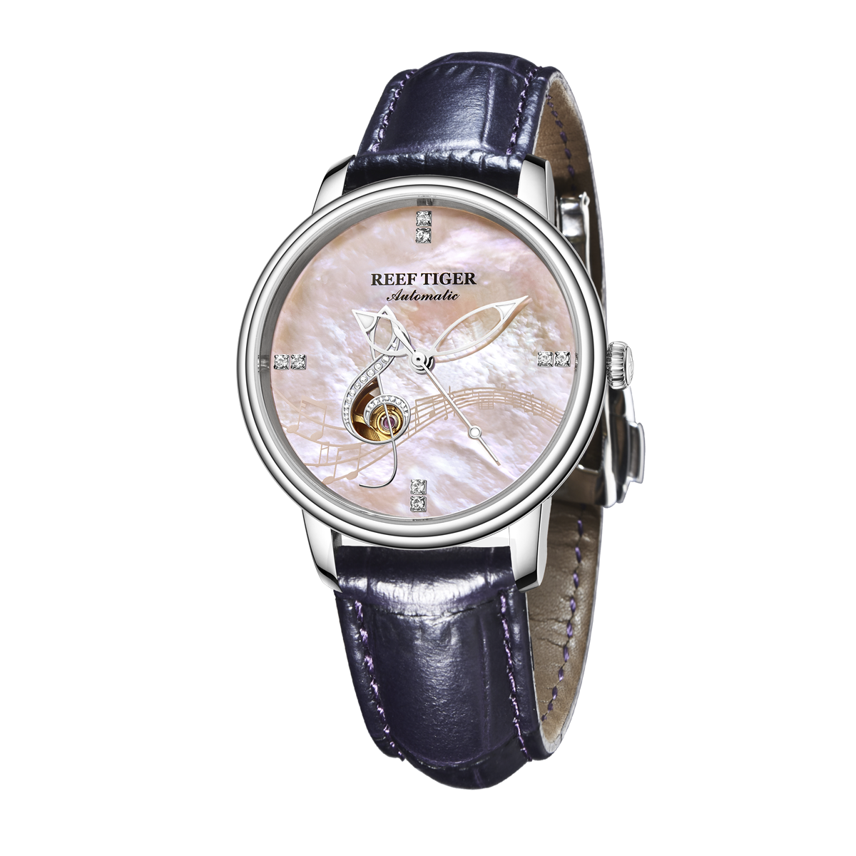 Reef Tiger Love Melody 腕表。耐用的鋼質(zhì)表圈,還配有打造專業(yè)外觀的提案和演示。耐用的聚酯前后蓋,協(xié)調(diào)一致。