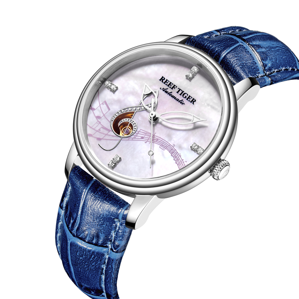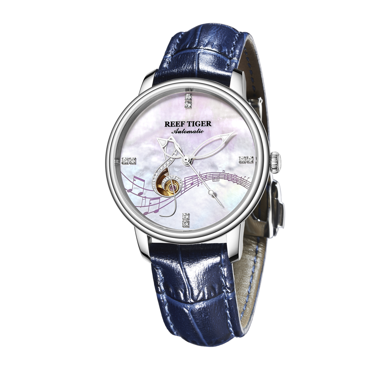 Reef Tiger Love Melody 腕表。耐用的鋼質(zhì)表圈,還配有打造專業(yè)外觀的提案和演示。耐用的聚酯前后蓋,協(xié)調(diào)一致。