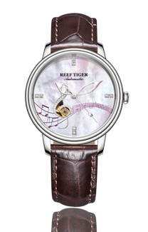 Reef Tiger Love Melody 腕表。耐用的鋼質(zhì)表圈,還配有打造專業(yè)外觀的提案和演示。耐用的聚酯前后蓋,協(xié)調(diào)一致。