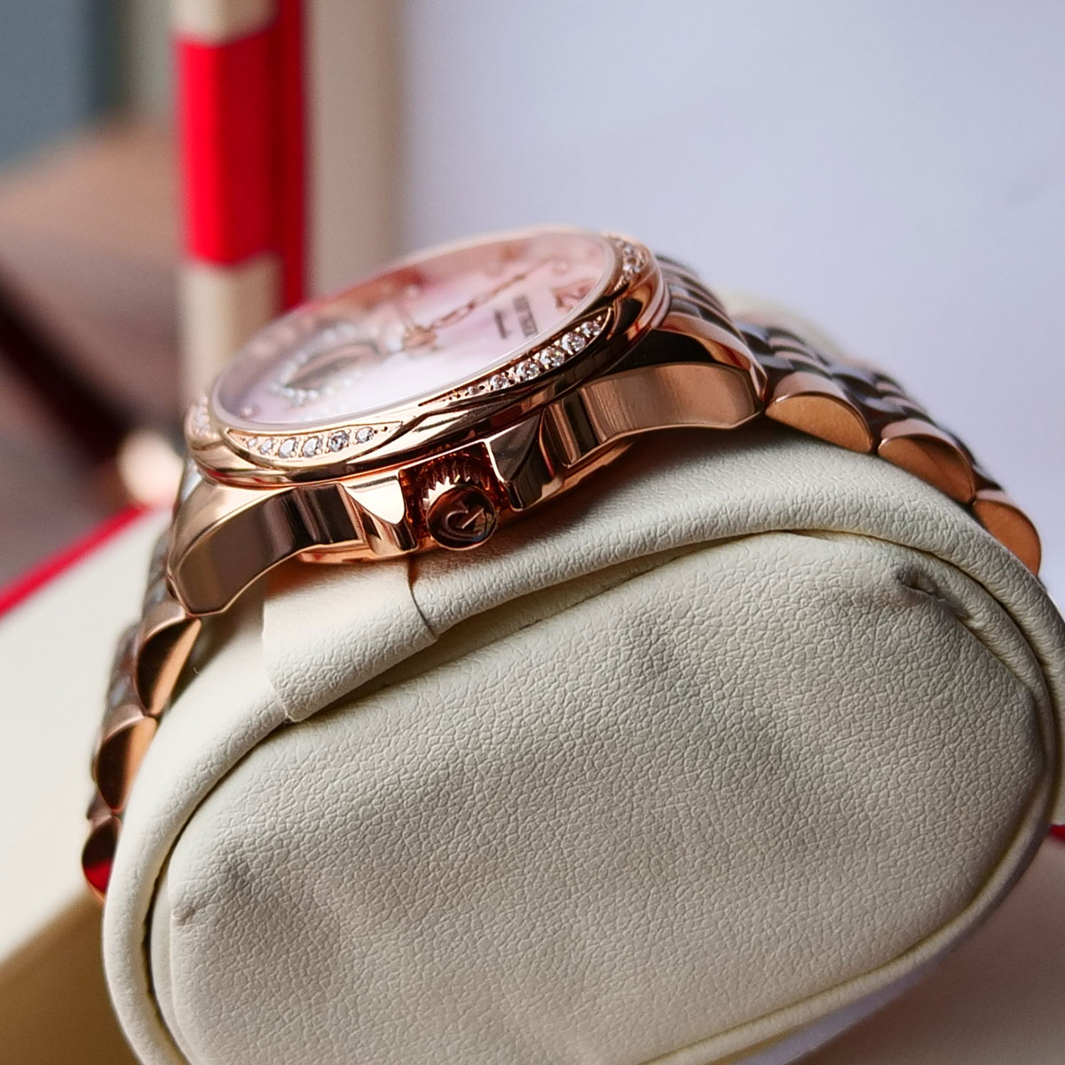 Love Double Heart 女士腕表。耐用的不銹鋼鉆石表圈還配有鉆石,打造專業(yè)的求婚和演示。耐用的聚酯前后蓋與表盤(pán)相得益彰。
